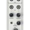 The inputs are attenuated per side, which is useful for managing levels and for driving the filter into percussive overload territory. An unattenuated AUX IN feeds both channels at once; this input can be handy for injecting a mono signal into the stereo field. Send a pulse into the TRIG IN with the resonance cranked, and the filter rings like a struck object, producing everything from woody clicks to bell-like tones, synthesized water drops, etc… If you patch a high-pass output back into the input and push Q further still, the filter will self-oscillate into a nice sine wave, which is trackable via the 1V/Oct input and lets you play it chromatically at that point.
